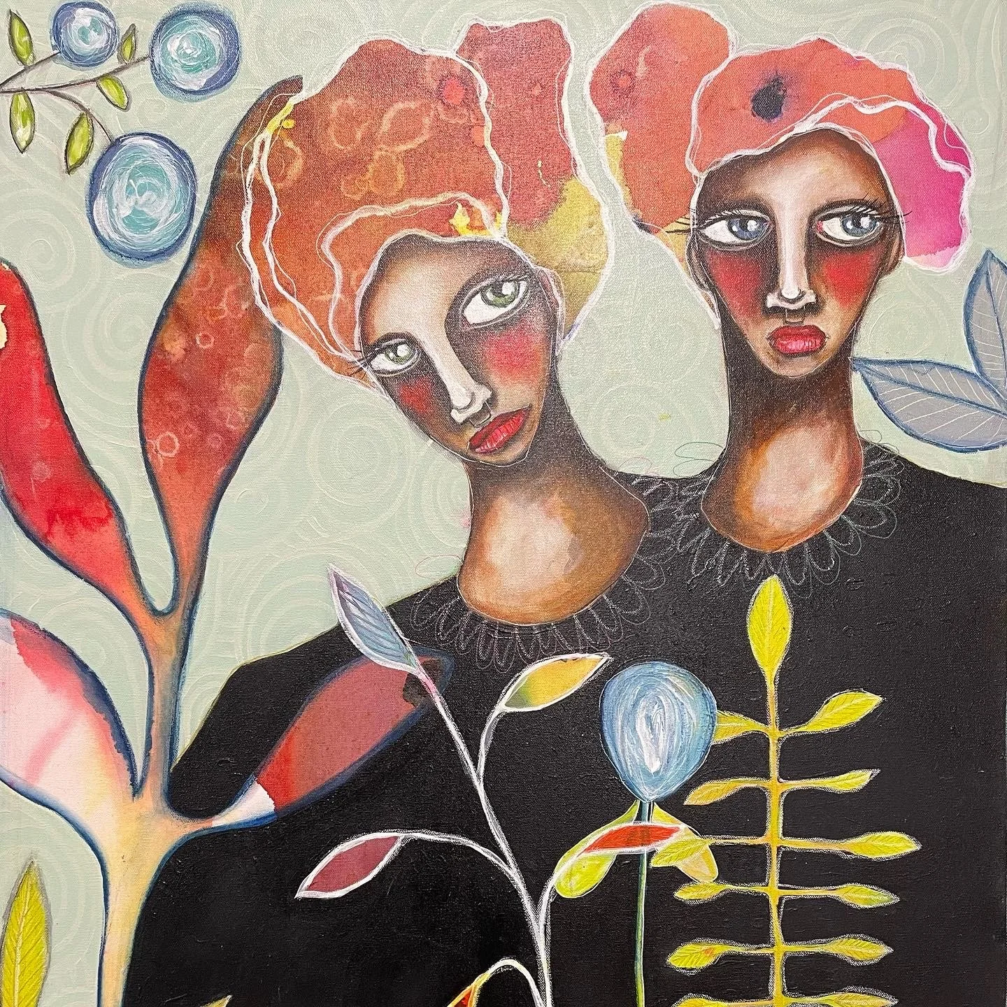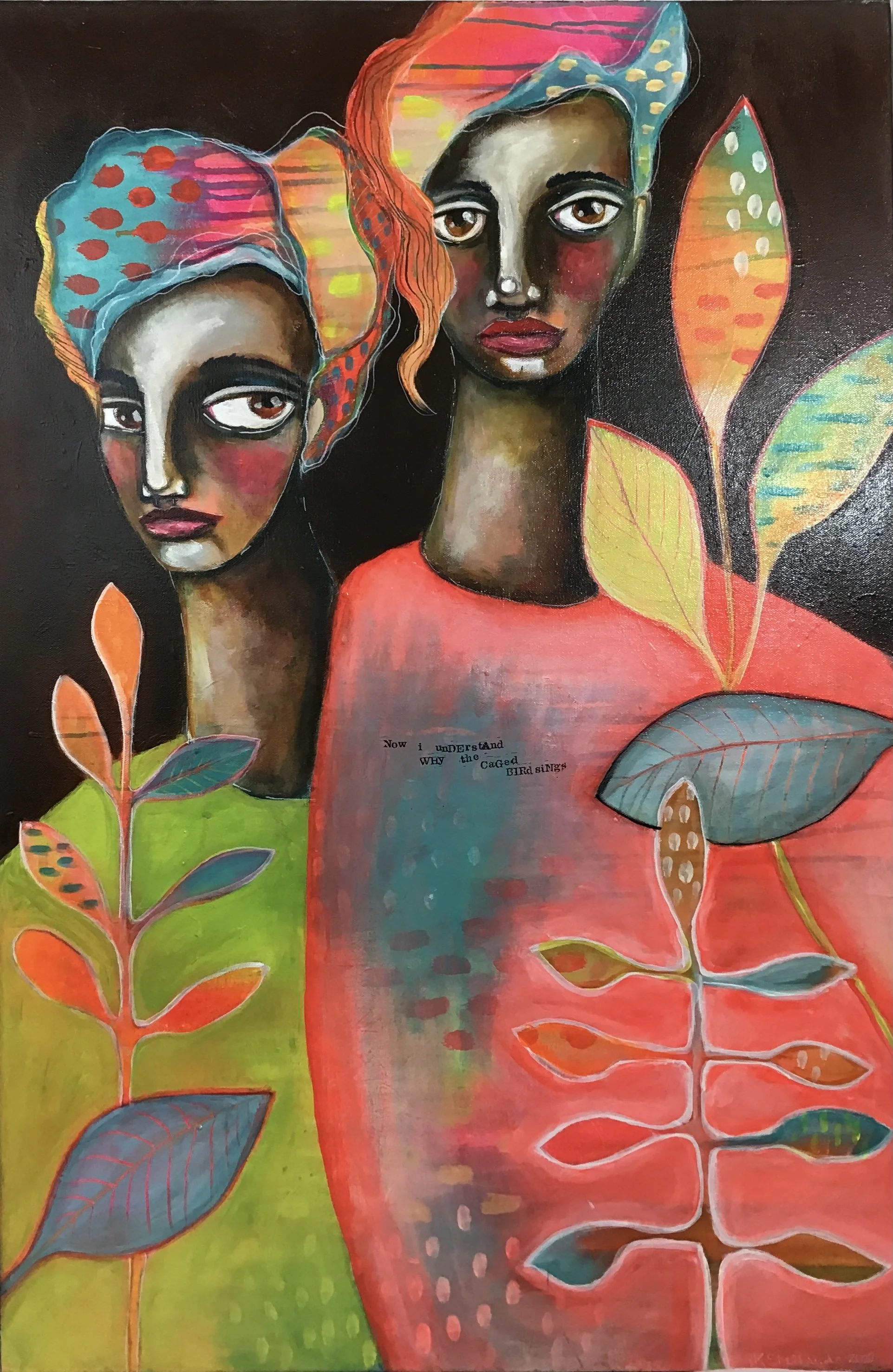 Constellations is a series of mixed media paintings created amid the genesis of the Covid-19 pandemic. The work was executed at a time when life was uncertain, the virus misunderstood, and social connections avidly feared and coveted. Our lifelines were with those we love and keeping them safe meant keeping our distance.