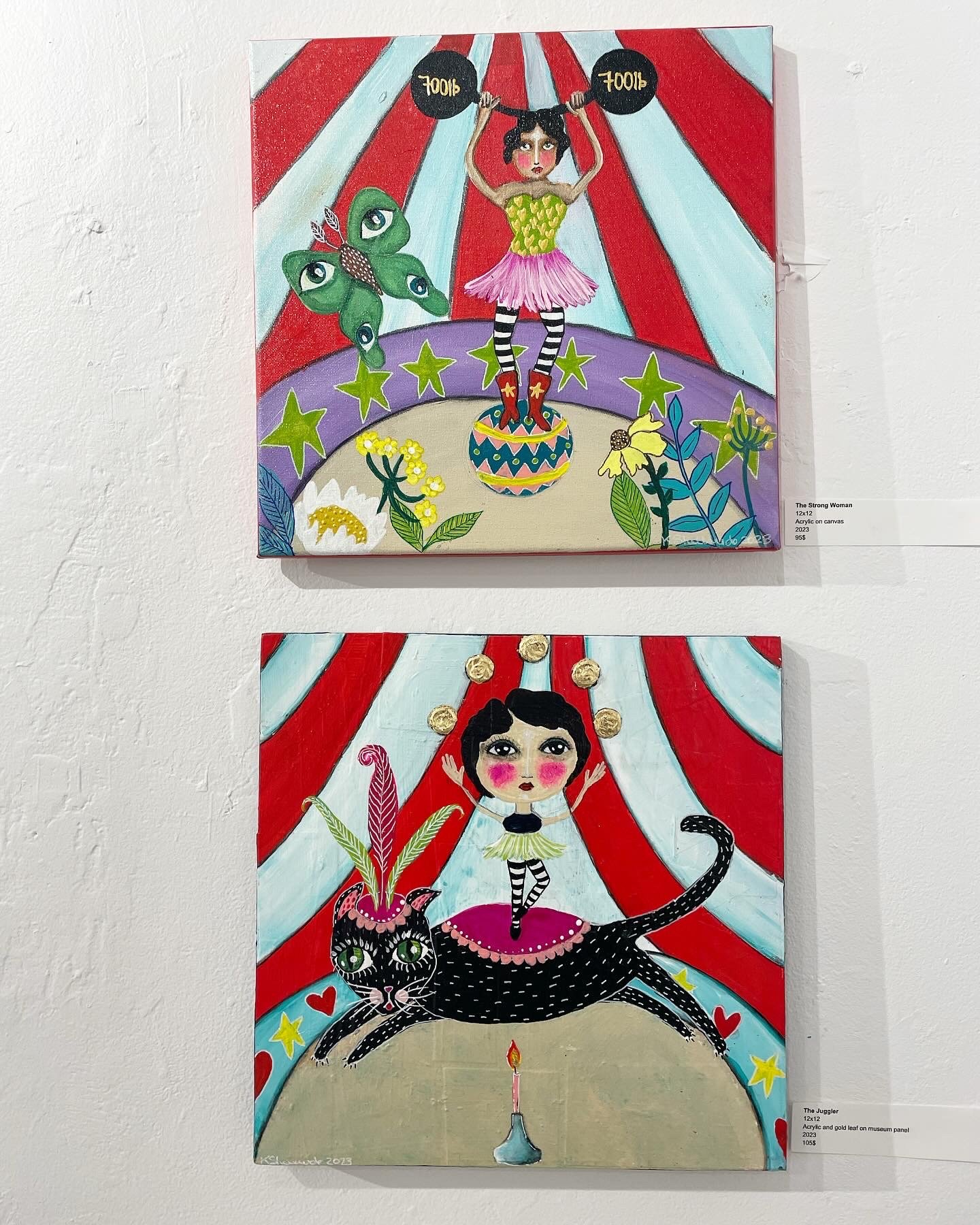 This show pays homage to the circus’s essence. My characters dwell on the fringes of societal norms and others perform traditional gender roles: femininity revealed in dress and dance, masculinity personified by moustaches and cannons.